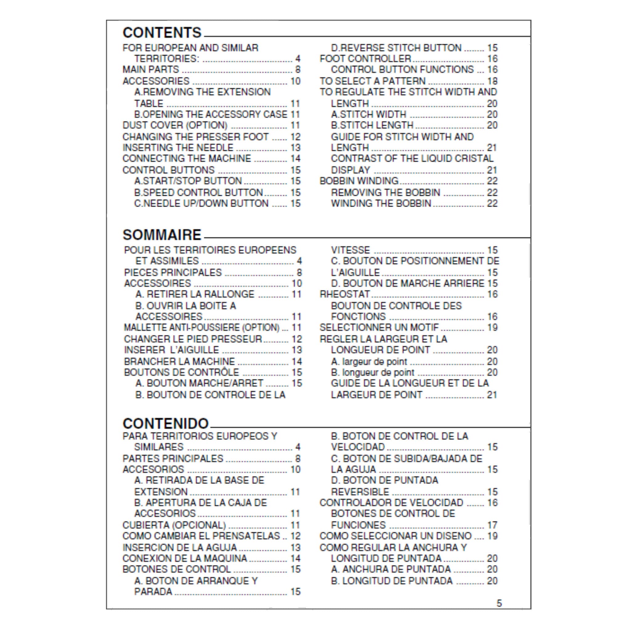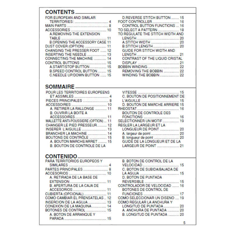 Singer XL-3400 Instruction Manual Details