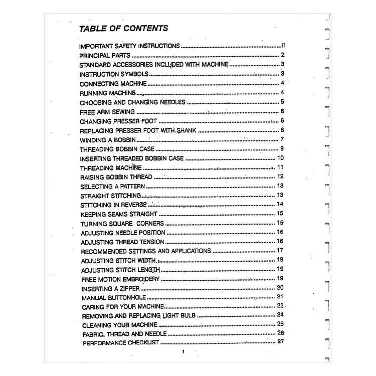 Singer 30218 Instruction Manual Details