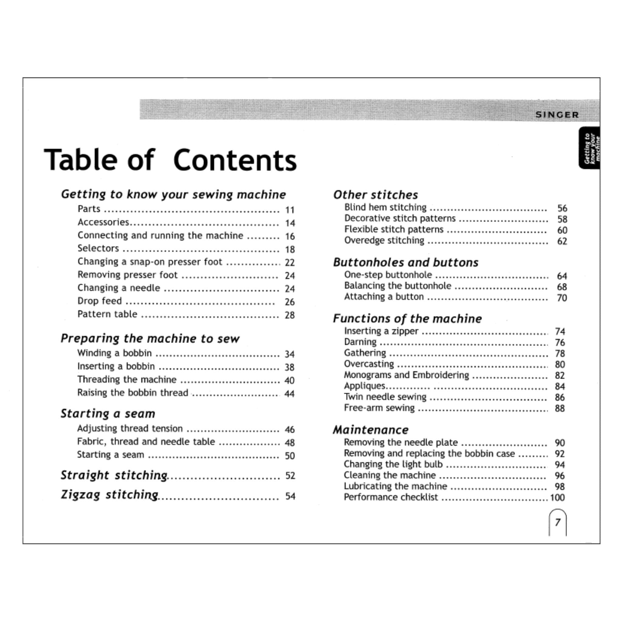 Singer 6038 Instruction Manual Details