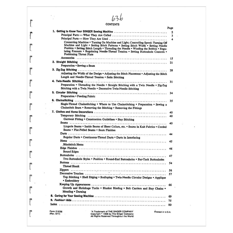 Singer 636 Instruction Manual (Model 636) - 79 Pages. Lost your serger machine's manual? We've got you covered! This instruction manual is the ultimate guide to unlock the full potential of your Singer 636. No more confusion or frustration—just clear, concise instructions right at your fingertips. What's inside? Everything you need to know from setting up to mastering your serger machine and all its features. The physical copy of the instruction manual is a soft-cover printed photocopy.