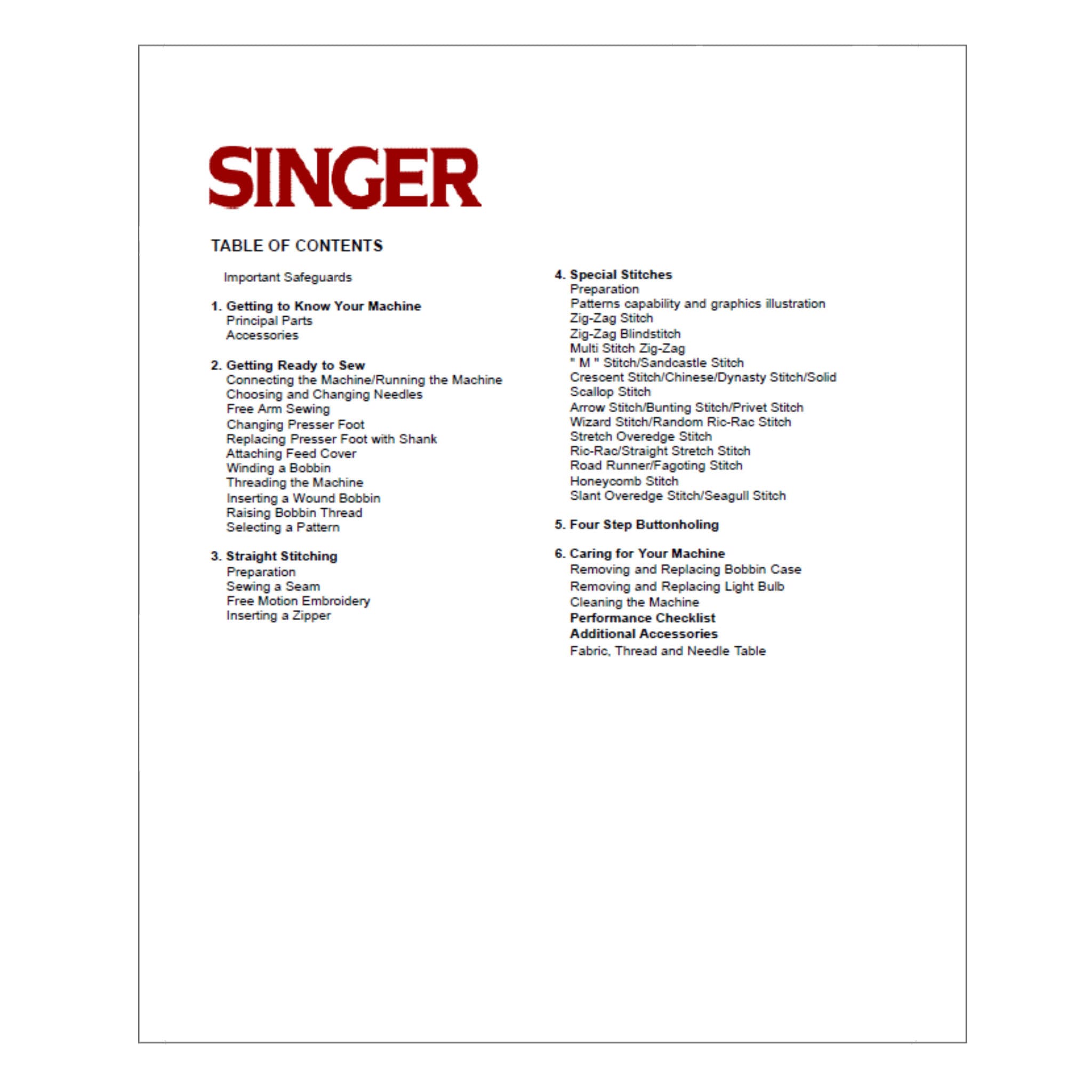 Singer 9430 Instruction Manual Details