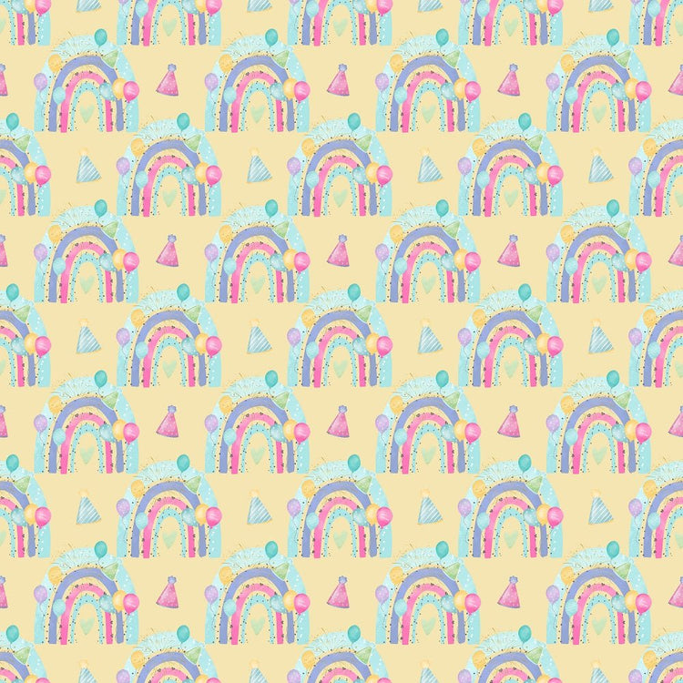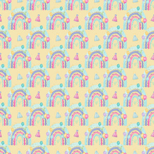 The Tan It's a Birthday Party Rainbows Fabric is part of the It's a Birthday Party Fabric Collection printed by Sew Creative Fabrics. Digitally Printed on 100% cotton.