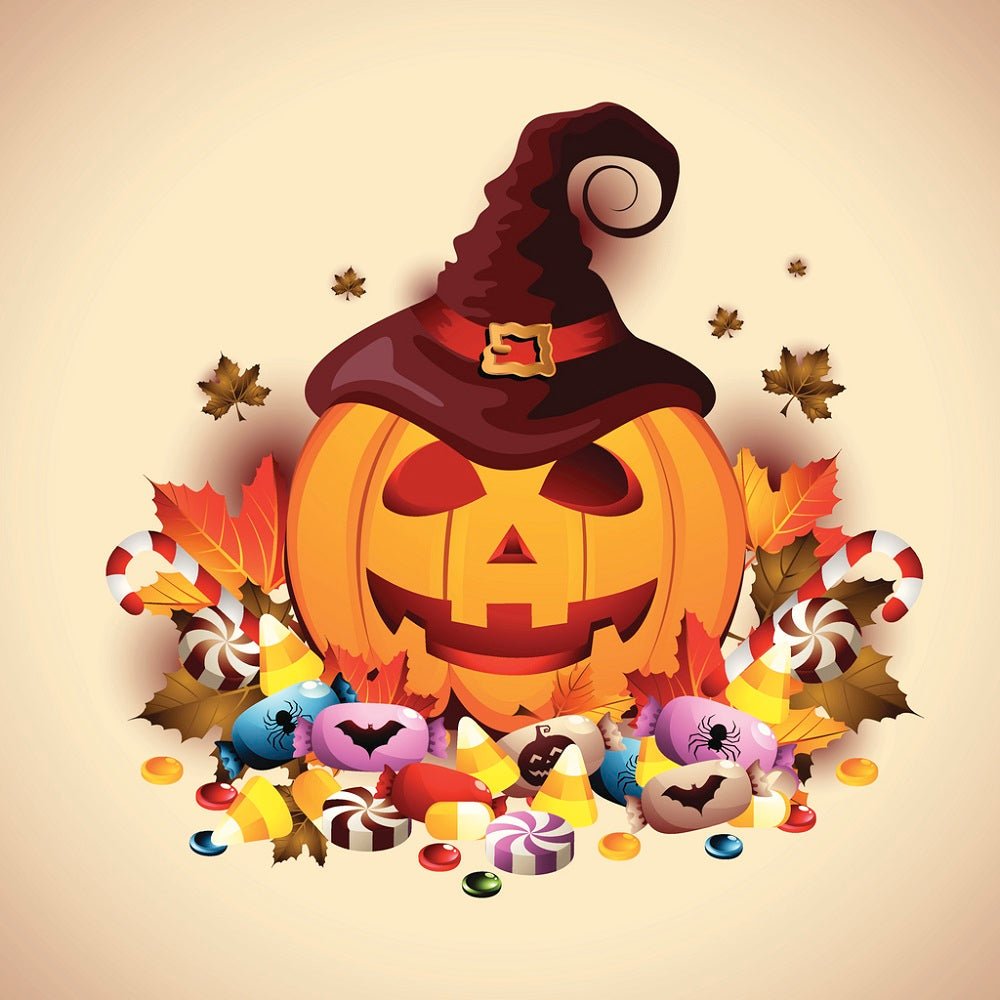 The Jack O' Lantern with Treats Fabric Panel is part of the Halloween Is Here! Fabric Collection printed by Sewing Parts Online. Digitally Printed on 100% cotton. This panel is available in 6 different sizes: