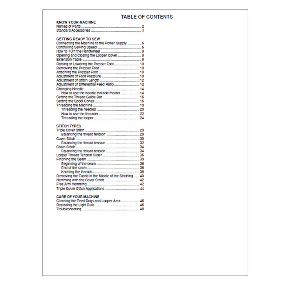 Janome 1000CPX Instruction Manual Details