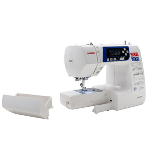 The 3160QOV is a relatively inexpensive sewing machine with all the high-end features of a luxury machine. This lightweight, computerized machine features a superior fabric feeding system, five essential buttons, and 60 built-in stitches at an affordable price. Janome's exclusive feeding system ensures even feeding on all fabric types and thicknesses. The five essential buttons are time-saving features that include start/stop, lock stitch, memorized needle up/down, thread trimming, and reverse. Another time-saving feature is the on-screen suggested presser foot. No need to refer to your instruction manual; simply select a stitch, and the recommended presser foot will be displayed on the LCD screen. Beginners will appreciate the lightweight and portability of the machine as well as onboard accessory storage.