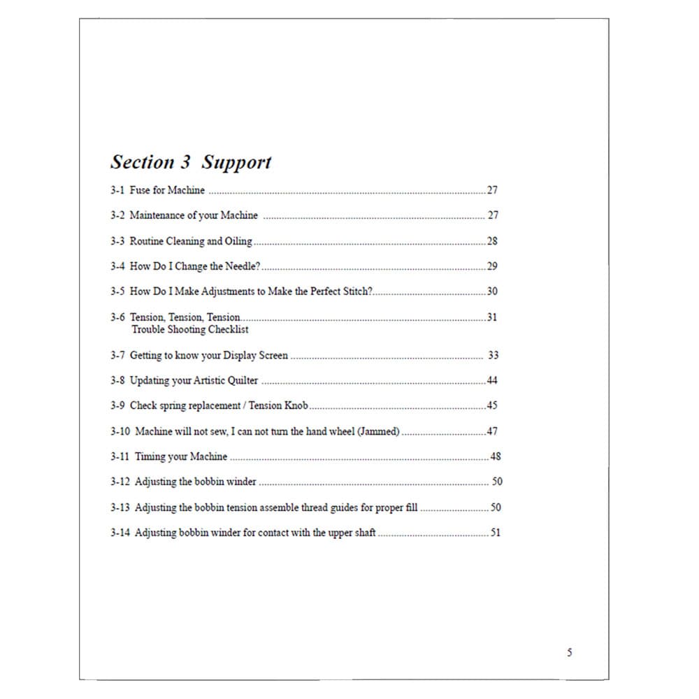 Janome Artistic Quilter 26DX Instruction Manual Details