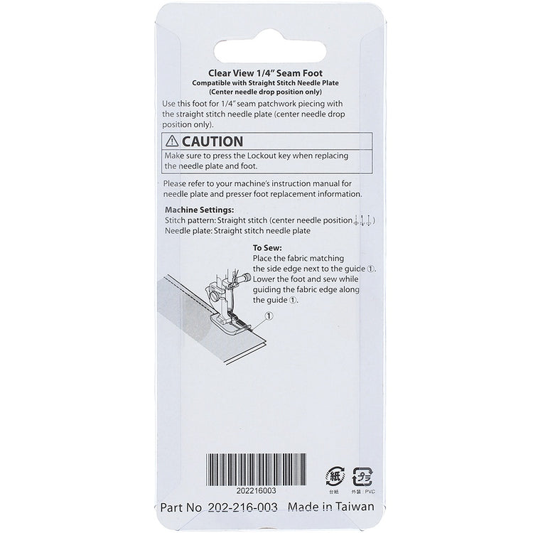 Clear View 1/4" Seam Foot, Janome #202216003 Details