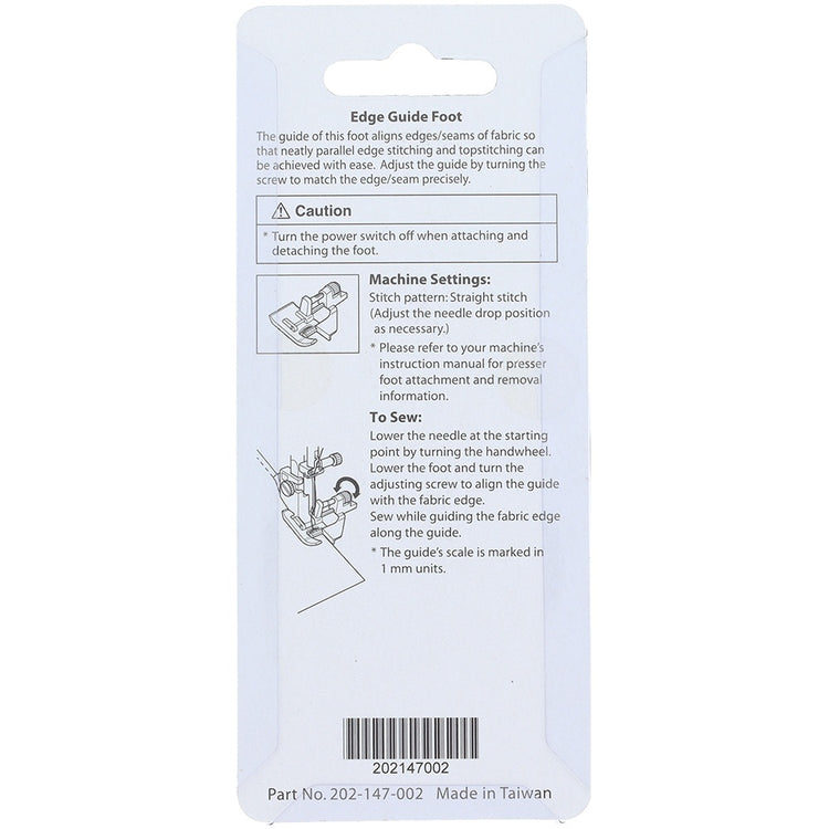 This foot has unique features that allow your to stitch perfectly on the edges of fabrics. You can use it to create a number of decorative trims and hems in perfectly straight line every time.