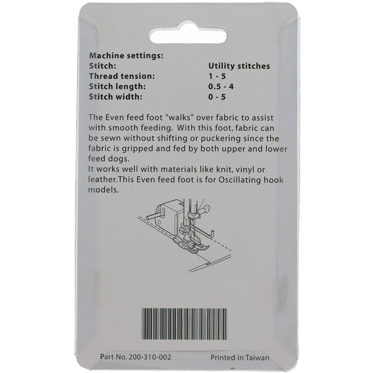 If you've ever struggled to feed your fabric through a sewing machine, you need a Walking Foot. Also known as a "Dual Feed Foot" and "Even Feed Foot", the Walking Foot is an essential tool for any sewer. This foot has built-in feed dogs that grip your fabric for better control. Sewing multiple layers of fabric professionally and with ease.