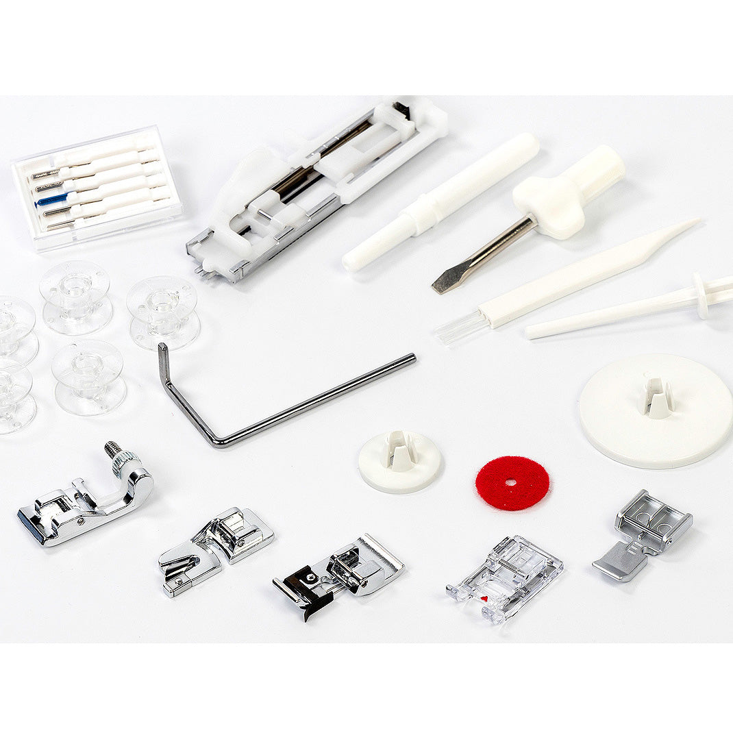 This machine comes with an auto-declutch bobbin winder that makes sewing a breeze. You can keep multiple bobbins on hand, so you have the perfect thread color for every project!