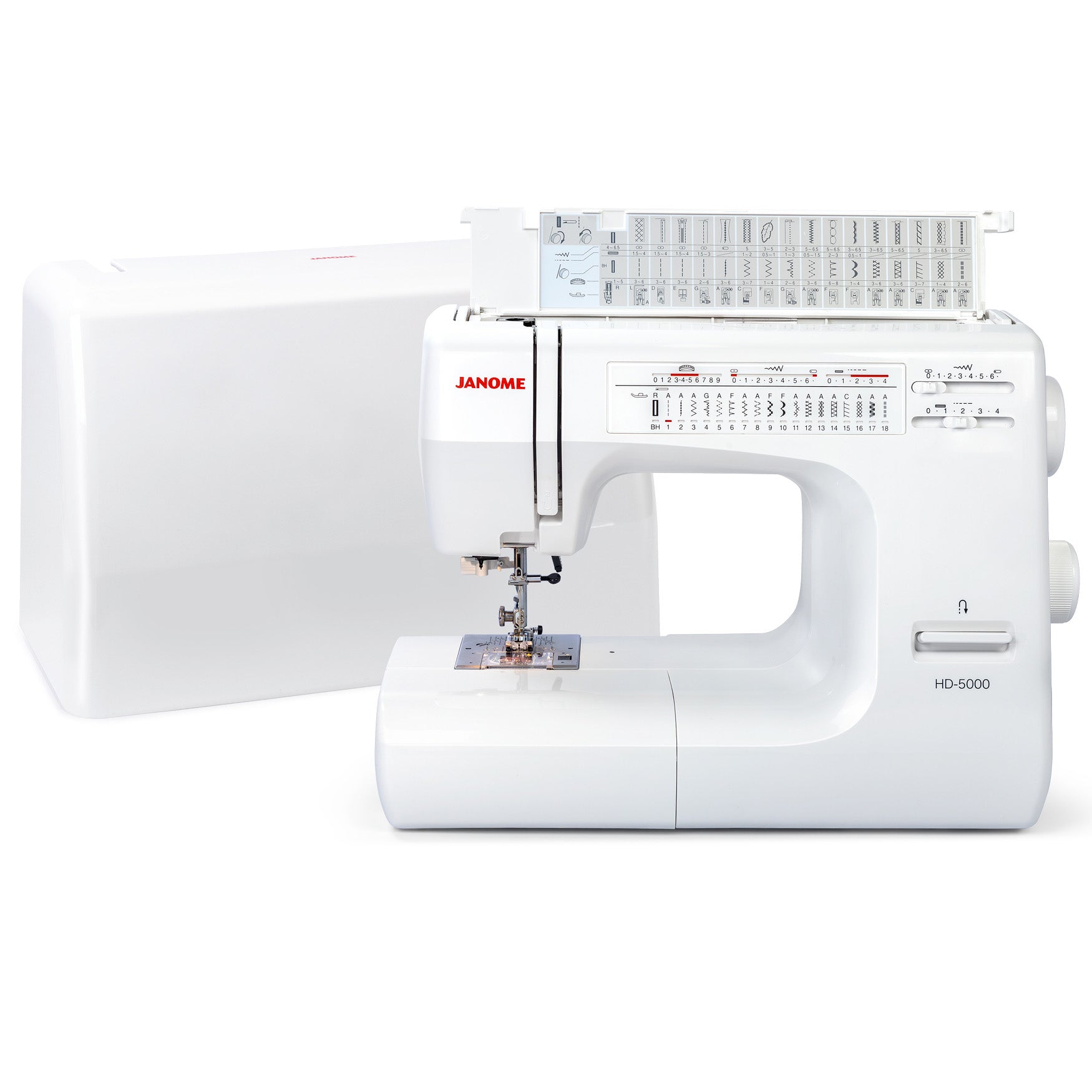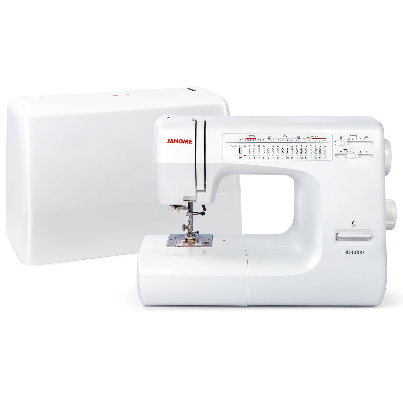 The Janome HD5000 comes with a free hard cover for protection against the most common killer of machines: dust and lint. The cover is lightweight, making it easy to take with you to a friend's house or a sewing class.