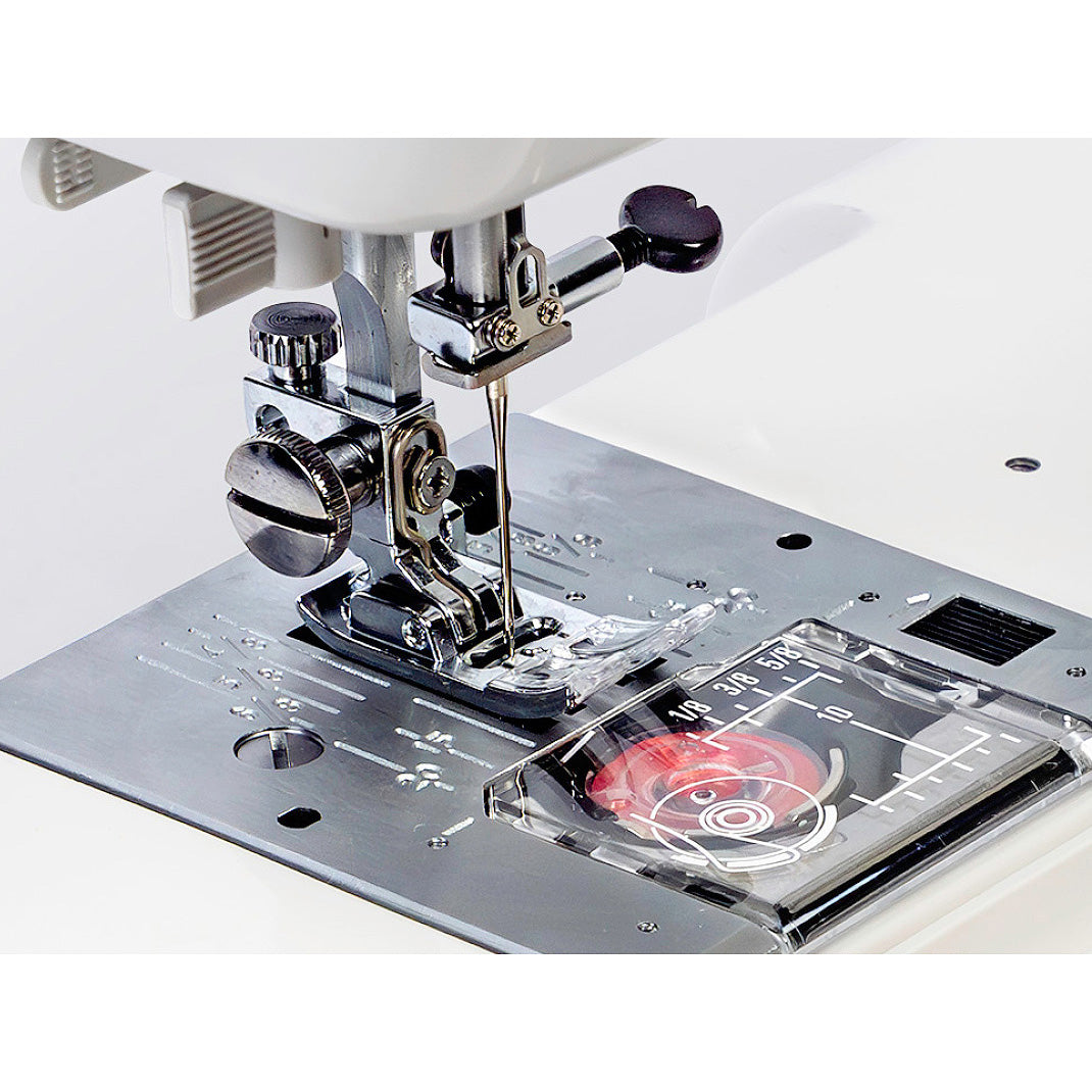 With the top-loading, drop-in bobbin on the HD-5000, you can smoothly and quickly change out your bobbin without losing too much time. Use class 15 plastic bobbins with this machine for the best possible sewing experience.