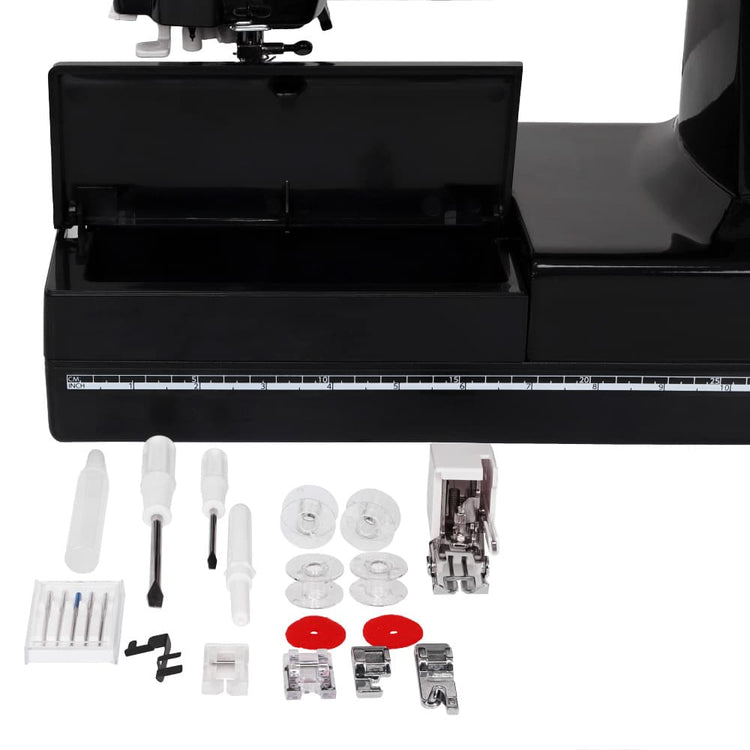The HD1000BE includes an extension table that not only provides a larger work surface but also opens up to allow for storage. Keep all of your favorite feet close at hand, or pop the table off to expose the free arm.