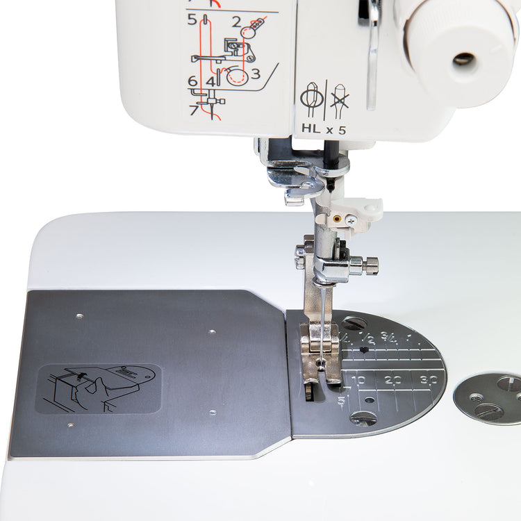The Needle Threader is a time-saving feature that simplifies one of the most precise tasks in sewing. With a quick and easy threading mechanism, this tool effortlessly guides the thread through the eye of the needle, making setup a breeze—especially for users with limited dexterity or those working in low-light conditions. This built-in feature reduces eye strain and frustration, allowing you to focus on your sewing instead of spending time on the delicate task of manual threading. Simply position the thread and engage the needle threader to have your machine ready to go in seconds.