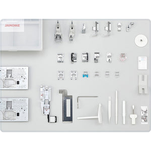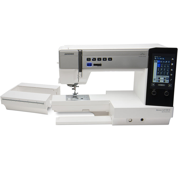 Create a legacy by adding Janome's new Horizon Memory Craft 9480QCP to your sewing machine collection. This professional machine comes packed with advanced features and must-have accessories. The 9480QCP includes 400 built-in stitches, 11 one-step buttonholes, Stitch Composer, the AcuSpark 2 app, a knee lifter, and the optional Accurate Stitch Regulator. You can customize each stitch, including buttonholes, plus save your favorite stitches easily using the 5-inch high-definition color touchscreen. With 11" to the right of the needle and the improved ergonomic shape with a full-intensity lighting system, you can easily tackle any project you place under the needle. Enjoy one-step needle plate conversion with the three included plates, automatic threading, 91 needle positions, automatic tension, and more. The 9480QCP has a top-loading rotary hook bobbin system, making bobbin changes a breeze. With 42 standard feet and accessories included, you know you'll have the right tools to do any project on the Janome Horizon Memory Craft 9480QCP.