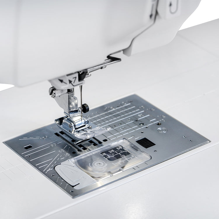 Get professional-quality stitches with the help of the 7-piece feed dog system. This seven-piece feed dog system ensures a more consistent fabric feed, keeping layers from shifting as you sew.
