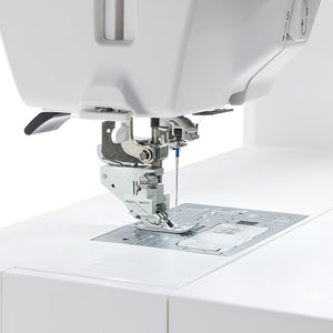 When you need extra space to sew thicker fabrics, Janome's MC9480QCP has you covered. It features an extra-high presser foot lift. This additional space makes it easier to sew multilayer projects, so there is no more struggling to fit thick fabrics like denim and fleece under your presser foot. You can raise the presser foot about 6mm (1/4˝) higher than the normal up position by exerting more pressure when lifting the presser foot or knee lifter. It also allows for easy changes of the needle plates.