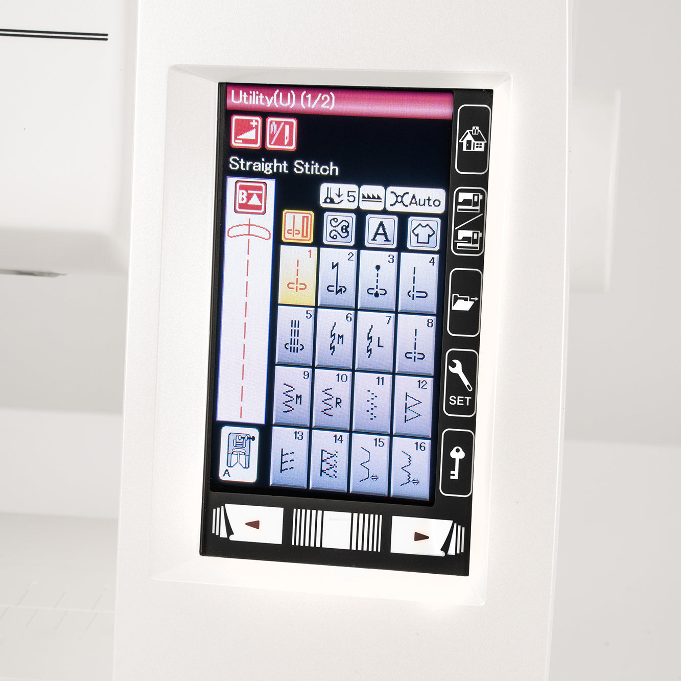 Navigate through all the features of the MC9850 with the LCD full-color touchscreen. Choose your stitches, designs, thread brand, and more from this easy-to-read display. If you ever get your machine into a bind, the MC9850 also offers sewing application support with on-screen help.