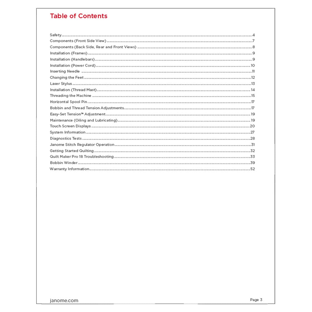 Janome QMPRO18 Quilt Maker Pro Instruction Manual Details