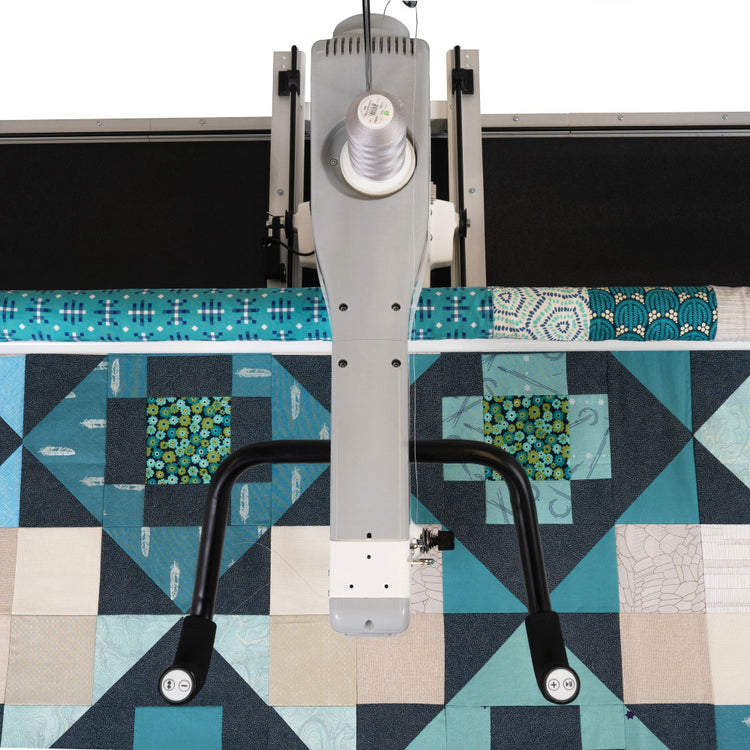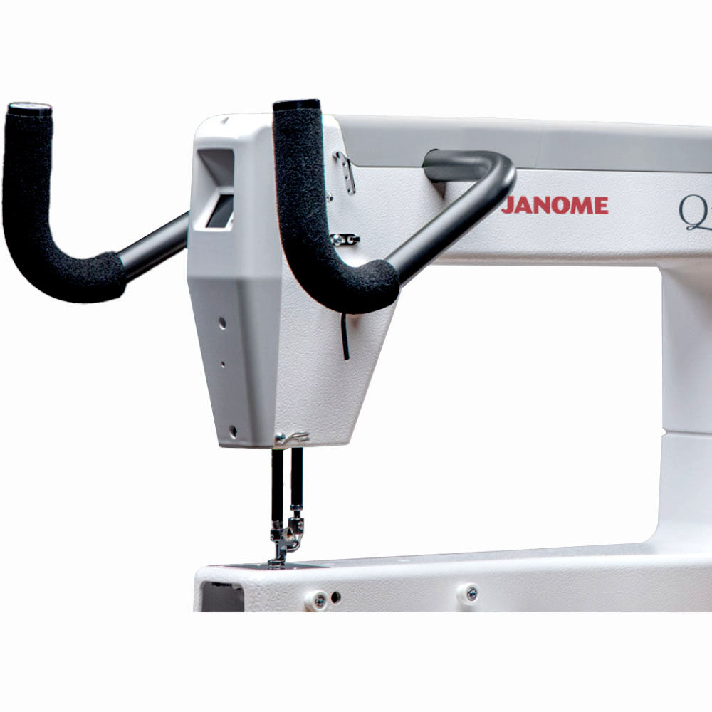 The QM15 comes with handlebars for the front of the machine. The soft, ergonomic handles are designed to follow the contours and curves of your hand, relieving stress in your hands and wrists so you can quilt comfortably and longer without any aches and pains.