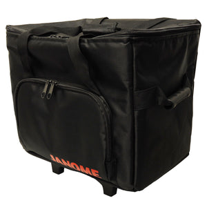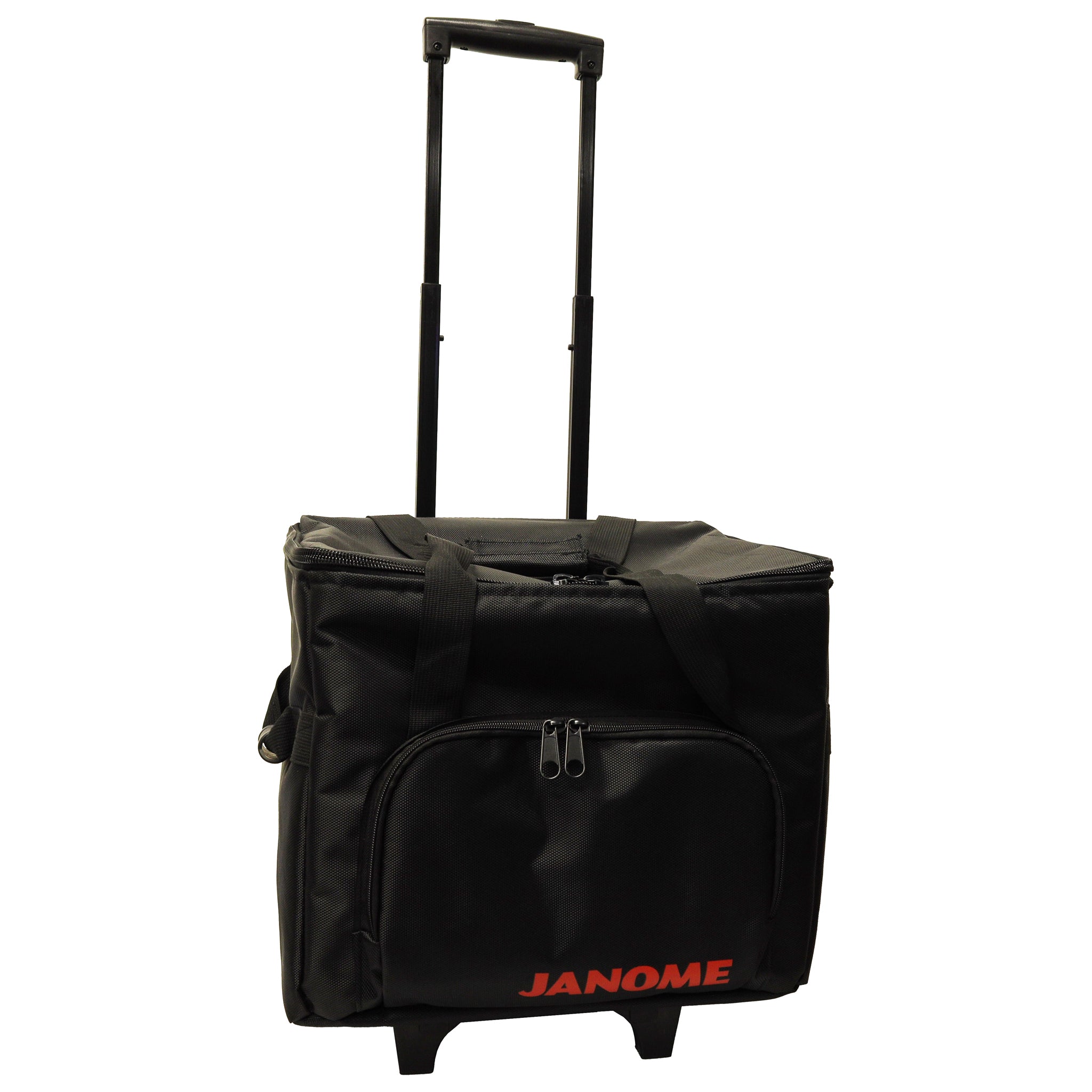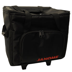 Travel with your serger safely and in style using the Janome Serger Trolley Bag. Designed with sturdy construction and smooth-rolling wheels, this bag makes transporting your machine effortless. The spacious interior measures 15.5" long, 14" wide, and 12.5" high, offering a secure fit for most Janome sergers while protecting them from bumps and scratches. This versatile case can also be used to transport and protect many small sewing machines, making it a flexible storage solution. A convenient front zipper pocket provides extra space for accessories, threads, and tools, while dual carrying handles and a retractable pull handle give you flexible options for transport. Whether heading to a class, retreat, or simply storing your machine at home, this trolley bag keeps your equipment organized, protected, and easy to move.