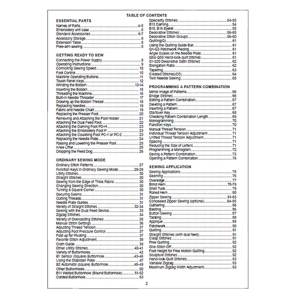 Janome Skyline S9 Instruction Manual Details