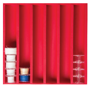 Keep your workspace organized with Janome's Square Bobbin Saver. Gone are the days of searching through drawers looking for a specific bobbin. With Janome's Bobbin Saver, you can store up to 66 bobbins in 6 organized rows. Stock stock up on bobbins of all different colors, knowing you can keep them organized, easily accessible, and neatly tucked away!