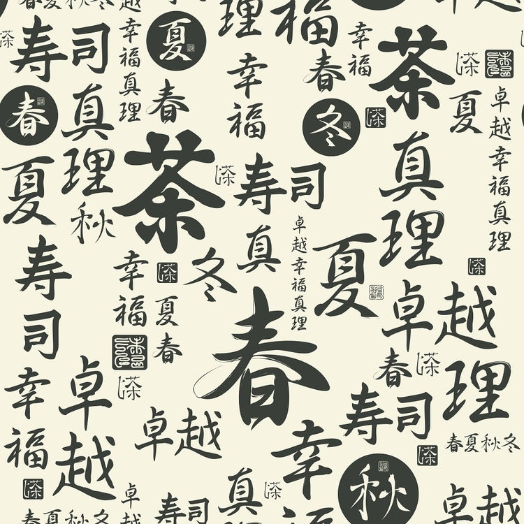 Japanese Symbols Fabric - Black Details