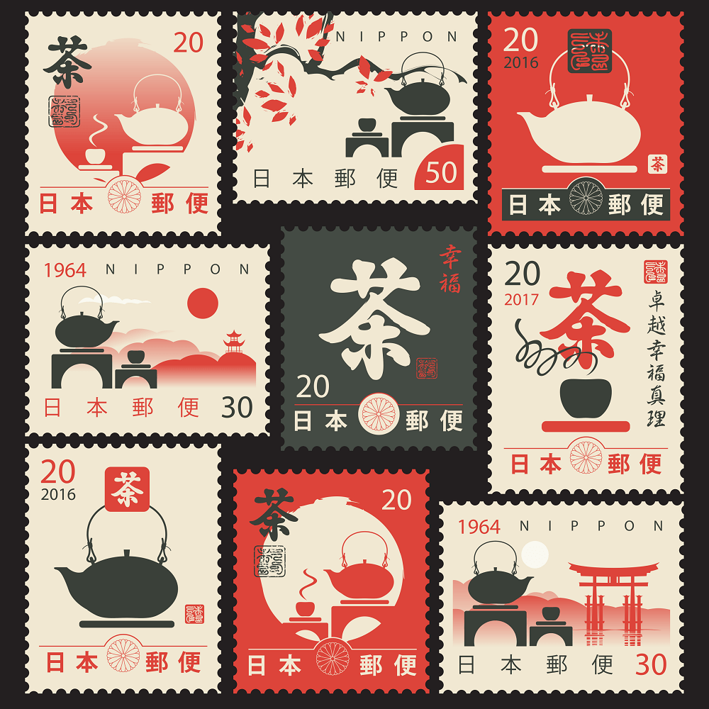 The Japanese Tea Postage Stamps Fabric Panel is part of the Theme Of Japan Fabric Collection printed by Sewing Parts Online. Digitally Printed on 100% cotton. This panel is available in 6 different sizes: