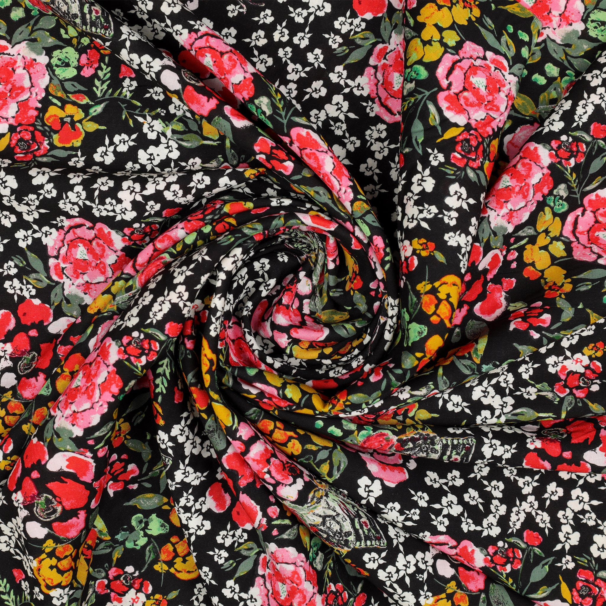 Measuring approximately 54" wide and made of 100% rayon, Jardin Robust has a luxuriously soft texture and an effortless drape. Rayon is prized for its breathability and lightweight feel, making it a wonderful choice for garments designed to move with you—think fluttery blouses, flowing dresses, or chic skirts. Its smooth finish and ability to showcase rich colors ensure the intricate floral details remain sharp and eye-catching.
