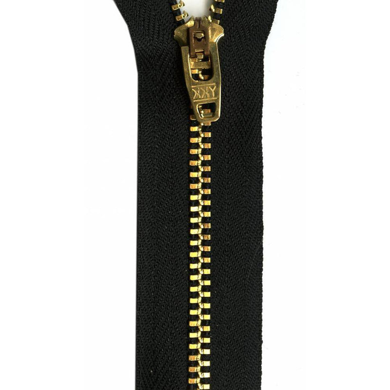 100% Poly Tape. Brass interlocking teeth (teeth size = 4.5mm). Closed.