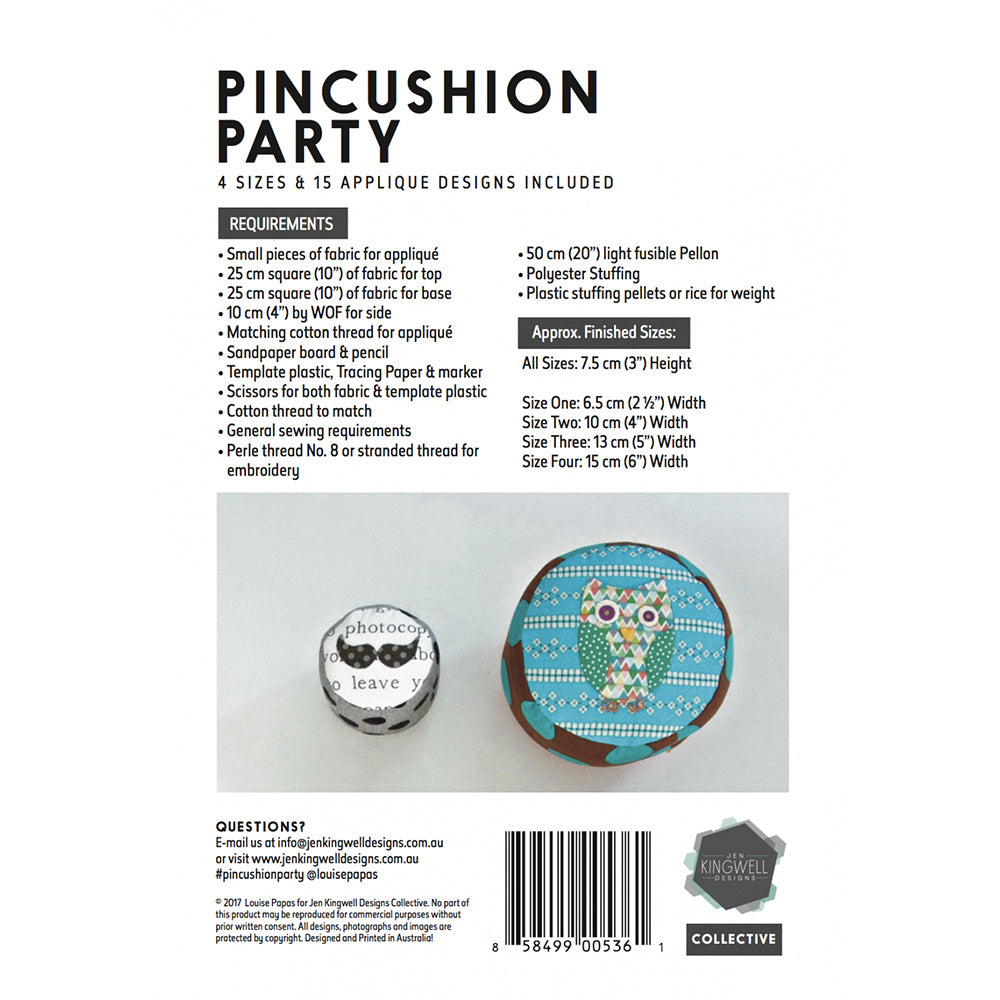 Get rid of your scrap fabric by having a Pincushion Party! This easy pattern from Louise Papas and Jen Kingwell Designs will show you how to create four different sized pincushions with fifteen various applique designs. Add apples, owls, flowers, a mustache, a camper, and more to your pincushion design. Included with the Pincushion Party Pattern is a full set of instructions and a list of fabric requirements.