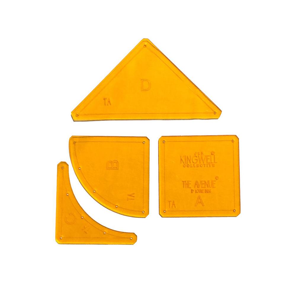 Create your own version of Louise Papas' The Avenue Quilt Pattern. This fun, fresh quilt can be made using fat-quarters, fabric scraps, or 10" squares. To make the cutting more manageable, you get a four-piece template set that will allow you to cut all the shapes you need. The Avenue is considered an intermediate skill level design. Included with The Avenue Quilt Pattern is a full set of instructions and a list of fabric requirements. Finished quilt measures 59" by 65".
