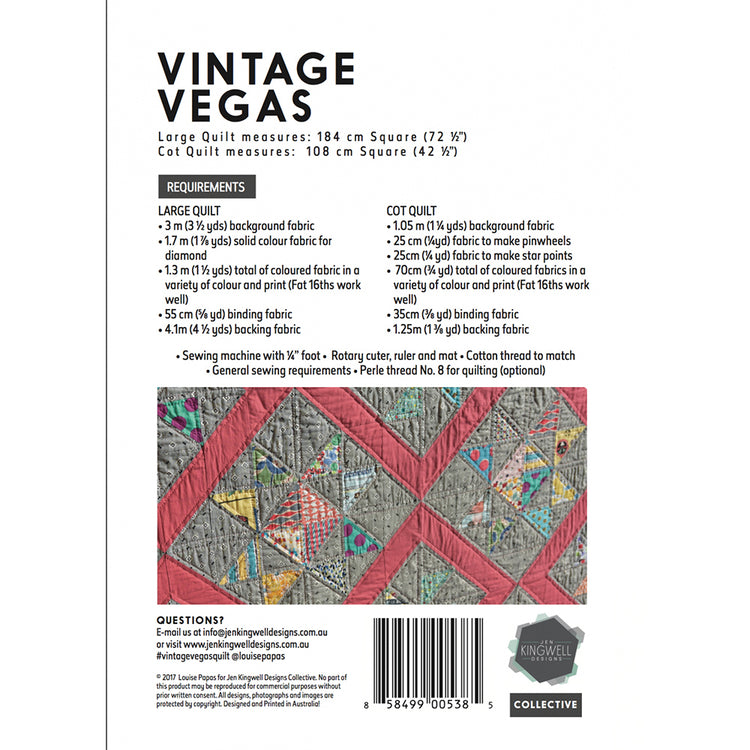 Jen Kingwell, Vintage Vegas Quilt Pattern Details
