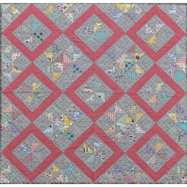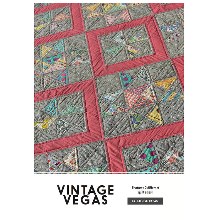 What happened in Vegas won't stay in Vegas with this quilt. Designed by Louise Papas for Jen Kingwell Designs, the Vintage Vegas Quilt Pattern is a beginner skill level design. This quilt will guide you through all the fun you can have with half-square triangles, and once you start mixing and matching fabric, you will have a one-of-a-kind quilt that you won't be able to find anywhere else! Finish the Vintage Vegas Quilt in two sizes, 72-1/2" square or 42-1/2" square. All the instructions you need to complete this pattern are included, as well as a list of fabric requirements.