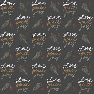 Joyful Christmas Love, Peace, & Joyful Fabric - Dark Gray