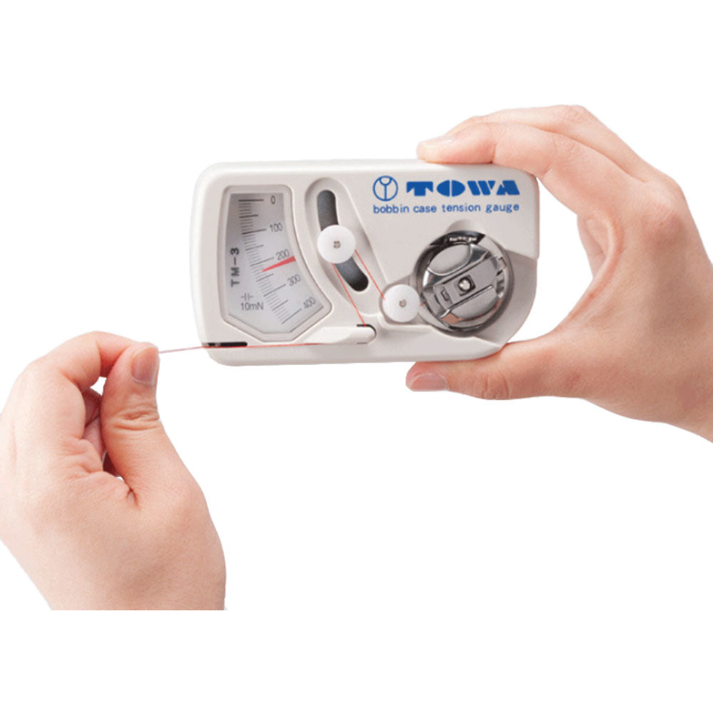 Juki's Bobbin Tension Gauge is used to measure the bobbin thread's tension. The tension can be measured without removing the bobbin case installed.