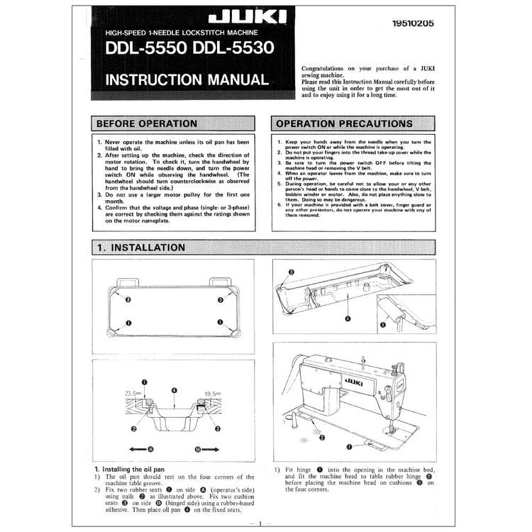 Juki DDL-5550 Sewing Machine Instruction Manual (Model DDL-5550) - 8 Pages. Lost your sewing machine's manual? We've got you covered! This instruction manual is the ultimate guide to unlock the full potential of your Juki DDL-5550. No more confusion or frustration—just clear, concise instructions right at your fingertips. What's inside? Everything you need to know, from setting up to mastering your sewing machine and all its features.