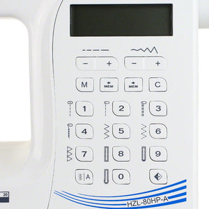 The HZL-80HP-A comes with four one-touch buttons. Use the one-touch needle up/down button to raise or lower your needle. The start/stop button is excellent for free sewing without your foot control, as well as sewing buttonholes. Other buttons include a reverse stitch and reinforced stitch.