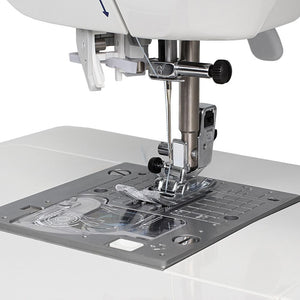 The Juki F300 comes equipped with a speed controller so you can limit how fast or slow it sews. This feature is excellent when you are working on projects that require extra care and attention. If you decide to set the machine at a slower speed, it won't sew faster than the limit you've chosen—no matter how hard you press down on your foot control. There is a start/stop button on the machine so that you can sew without a foot control altogether if you'd prefer!