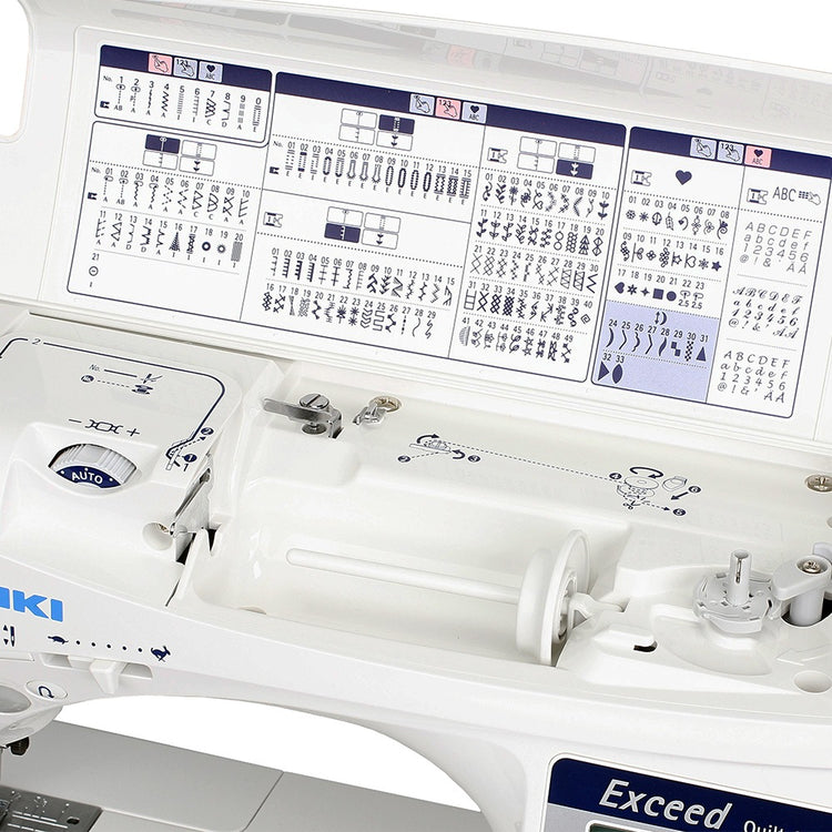 5-Years Parts2-Years ElectricalYou want the best of the best sewing machine, not one that doesn't work as hard as you do. The computerized Juki Exceed HZL-F300 is a top-seller capable of keeping up with any home sewing project without compromising the bells and whistles you'd expect from a quality machine. Key features include an innovative box feeding system, an automatic buttonhole foot with a built-in sensor, and a foot-controlled automatic thread cutter. Large enough to accommodate your big projects and sturdy enough to power through your toughest ones, the Juki HZL-F300 will more than exceed your expectations. Keep reading to learn more about all of the features the Juki Exceed F300 has to offer!