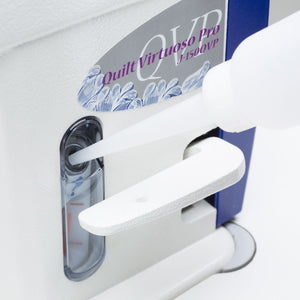 The Micro-Lifter (Float Function) prevents slippage and damage when sewing raised or layered fabric. When using this feature, keeping the same presser foot pressure, the presser foot floats 0 to 4mm above the material, which is beneficial for sewing over thick seams and reduces uneven feeding while quilting.