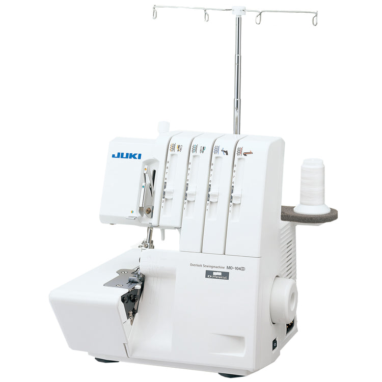 The stitch length on the MO-104D is easily adjustable with the accessible slider on the inside of the cloth plate. Adjust your stitches from 1 to 4mm millimeters. Most overlock work is done with a basic setting of 2 - 3 mm.
