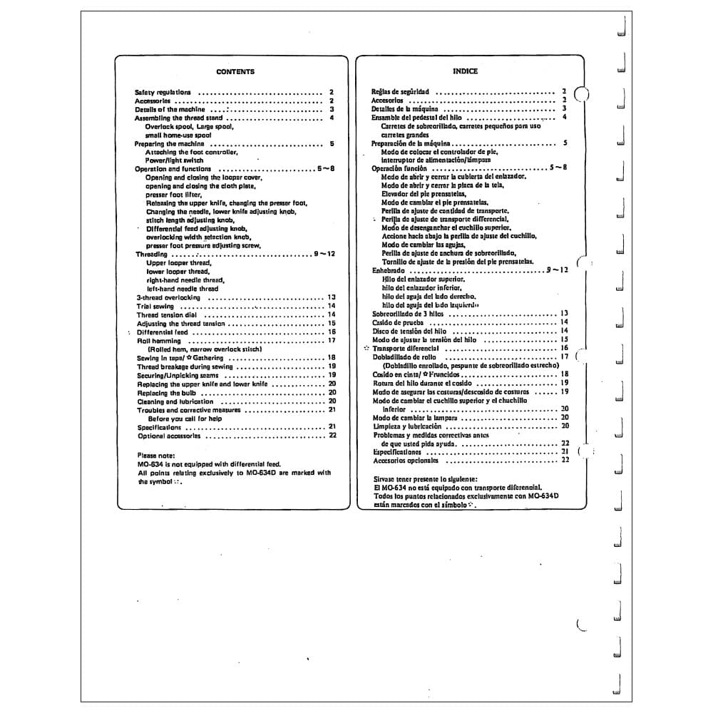 Juki MO-634 Serger Machine Instruction Manual (Model MO-634) - 26 Pages. Lost your serger machine's manual? We've got you covered! This instruction manual is the ultimate guide to unlock the full potential of your Juki MO-634. No more confusion or frustration—just clear, concise instructions right at your fingertips. What's inside? Everything you need to know from setting up to mastering your serger machine and all its features.