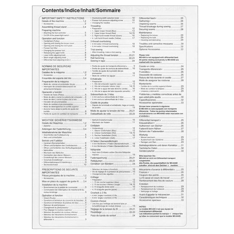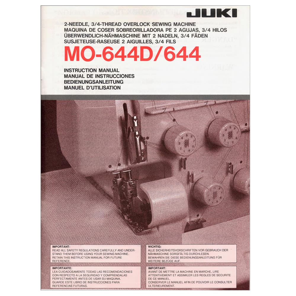Juki MO-644 Serger Machine Instruction Manual (Model MO-644/644D) - 40 Pages. Lost your serger machine's manual? We've got you covered! This instruction manual is the ultimate guide to unlock the full potential of your Juki MO-644. No more confusion or frustration—just clear, concise instructions right at your fingertips. What's inside? Everything you need to know from setting up to mastering your serger machine and all its features.