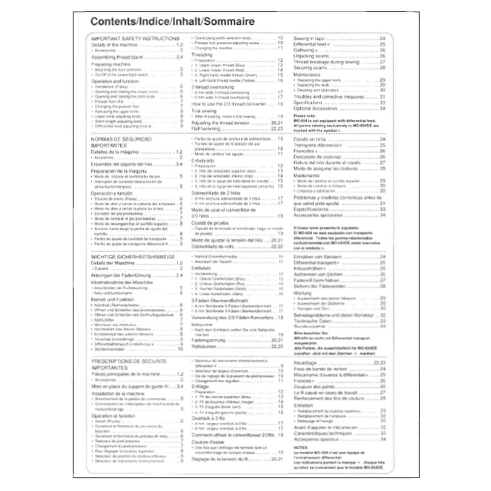 Juki MO-654DE Serger Machine Instruction Manual (Model MO-654DE/654) - 40 Pages. Lost your serger machine's manual? We've got you covered! This instruction manual is the ultimate guide to unlock the full potential of your Juki MO-654DE. No more confusion or frustration—just clear, concise instructions right at your fingertips. What's inside? Everything you need to know from setting up to mastering your serger machine and all its features.