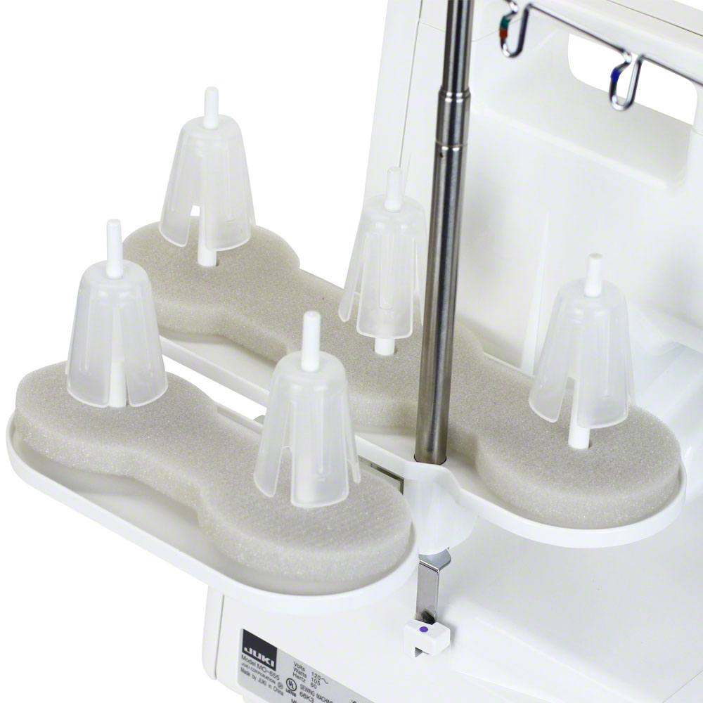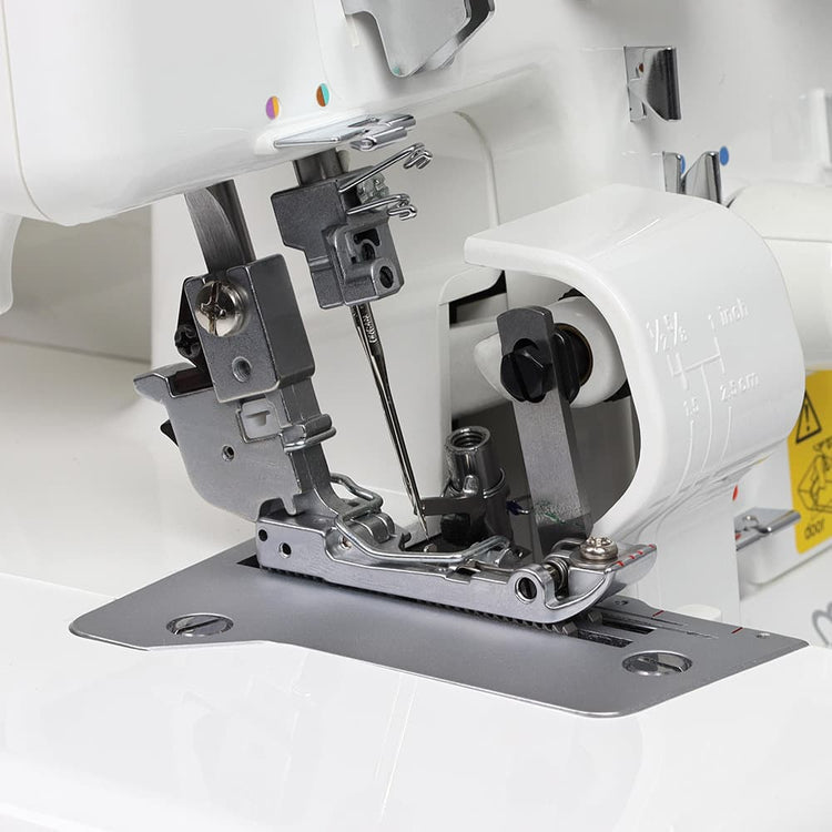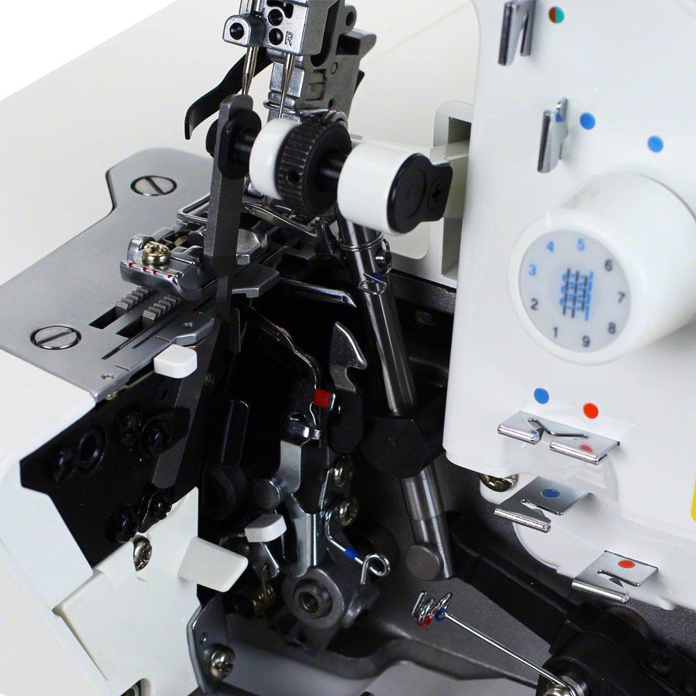 This heavy-duty, razor-sharp knife system is strong enough to consistently create fray-free edges on all fabric weights, from the lightest chiffon to the heaviest denim. The upper knife is retractable, protecting your fingers while threading. The lower blade is also adjustable.