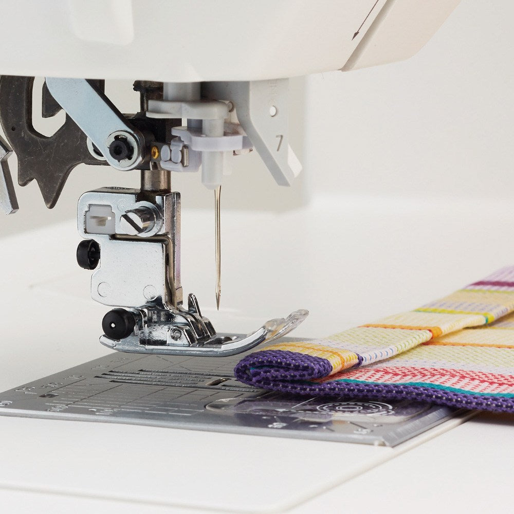 Painlessly switch to perfect straight stitch sewing with the revolutionary Interchangeable Single Needle System. Produce perfect stitches from start to finish. Using the straight stitch needle plate will prevent pulling, bunching, or fabric squeezing into the needle opening. Discover phenomenal results for perfect piecing, close edges, curves, layers, etc.
