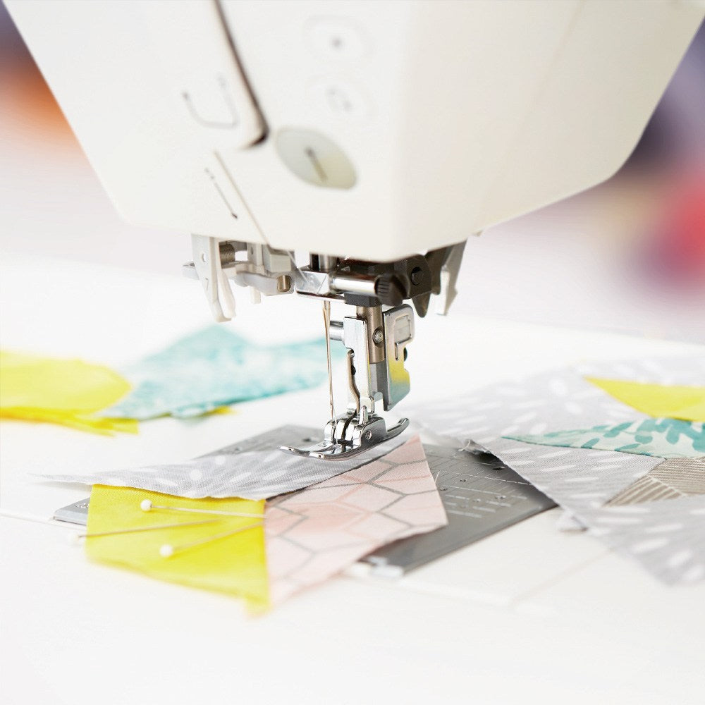 With the touch of a button, lower the feed dogs for fluid and effortless free-motion sewing. Create freehand patterns in any direction or free-motion and sew along the outside edge of a quilting ruler to create stunning designs.