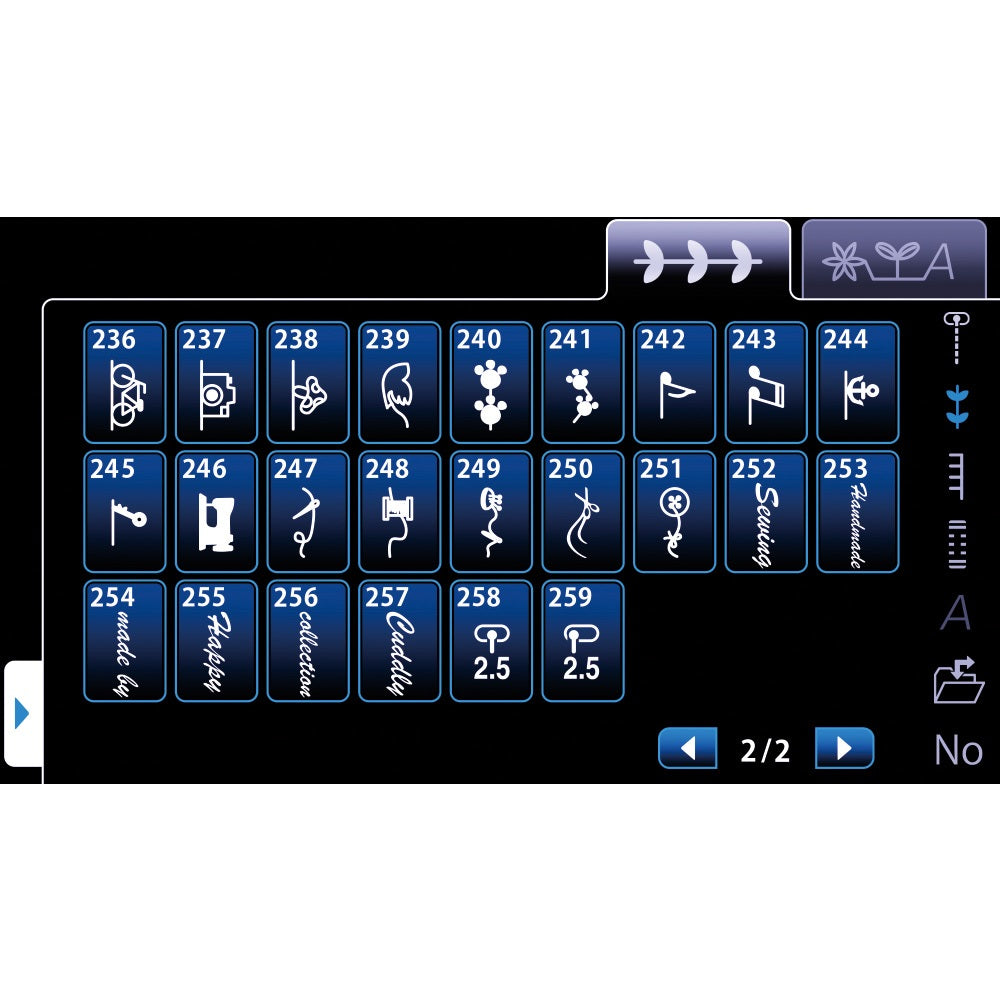 With 351 Built-in Stitch Patterns, choose from practical, decorative, quilting, professional buttonholes, and lettering fonts. These patterns are fully customizable by combining, flipping vertical/horizontal, elongating, and repeated sewing. These vast editing functions provide infinite possibilities for creative freedom. Select, combine, and save your favorite stitches with 10 folders of user memory.